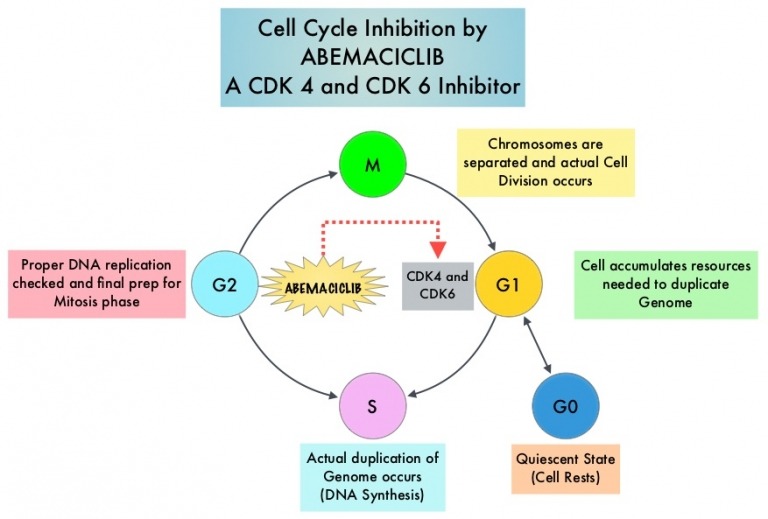 از هر هشت زن، یک زن به سرطان پستان مبتلا خواهد شد. شرکت داروسازی Eli Lilly، داروی Abemaciclib را که به Verzenio نیز شناخته میشود، برای درمان سرطان پیشرفته پستان تولید کرده است. در جولای ۲۰۱۷، سازمان غذا و داروی آمریکا (FDA) این دارو را تایید کرد. این دارو برای درمان بیماران مبتلا به سرطان پستان پیشرفته از نوع HRمثبت وHER2 منفی به کار می رود. دارو از رشد سلولهای سرطانی جلوگیری میکند. این دارو حاوی مهار کننده برای دو پروتئین CDK4 و CDK6 است. پیشبینی شده است که این دارو در سال ۲۰۱۸ وارد بازار شود.