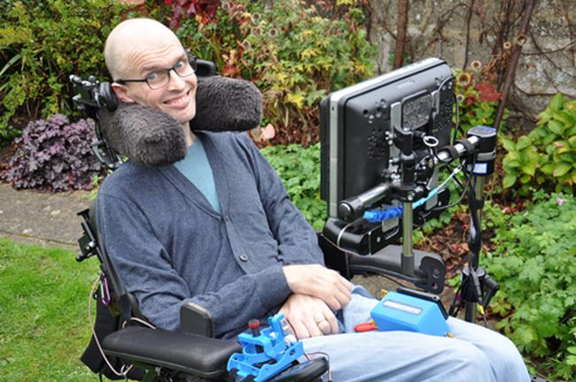 شگفت زده خواهید شد در صورتی که بدانید Patrick Joyce چهل و شش ساله، رهبر توسعهدهندههای این ابزار، خود نیز از بیماری نورونهای حرکتی رنج میبرد اما قادر است تا صندلی چرخدار خود را با دستانش کنترل کند. در حالی که همکار وی، Steve Evans که او نیز از بیماری مشابه رنج میبرد تنها میتواند چشمان خود را حرکت دهد و وابسته به کمک دیگران است. ساختن این وسیله با وجود بیماری بسیار شگفتانگیز است و ارزش توسعۀ این ابزار را که تقریباً دو سال طول کشیده است بیشتر میکند.