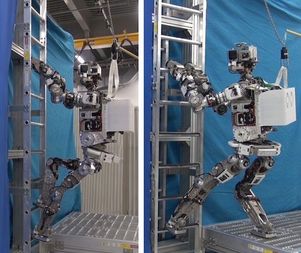در آزمونهای اولیۀ رقابتهای رباتیکی DARPA، رباتها باید از پله هایی با شیب زیاد بالا میرفتند. انجام این کار برای رباتها بسیار دشوار بود و برای همین در مرحلۀ پایانی این رقابتها، پله ها کوتاهتر و با شیب کمتر در نظر گرفته شدند. شرکت هوندا برای عبور از پله ها وقت نگذاشته و به جای آن ربات آنها میتواند از یک نردبان عمودی بالا برود. این کار شامل قرار گرفتن روی آن از یک راهرو باریک و پایین آمدن از آن است. ما تا کنون شاهد چنین رفتاری از یک ربات نبوده ایم. انجام این حرکت اصلاً آسان نیست. زیرا نردبان خود لغزنده است و هر گونه لغزش، چرخش یا اشتباه در وضعیت حرکت ربات میتواند او را زمین بزند.